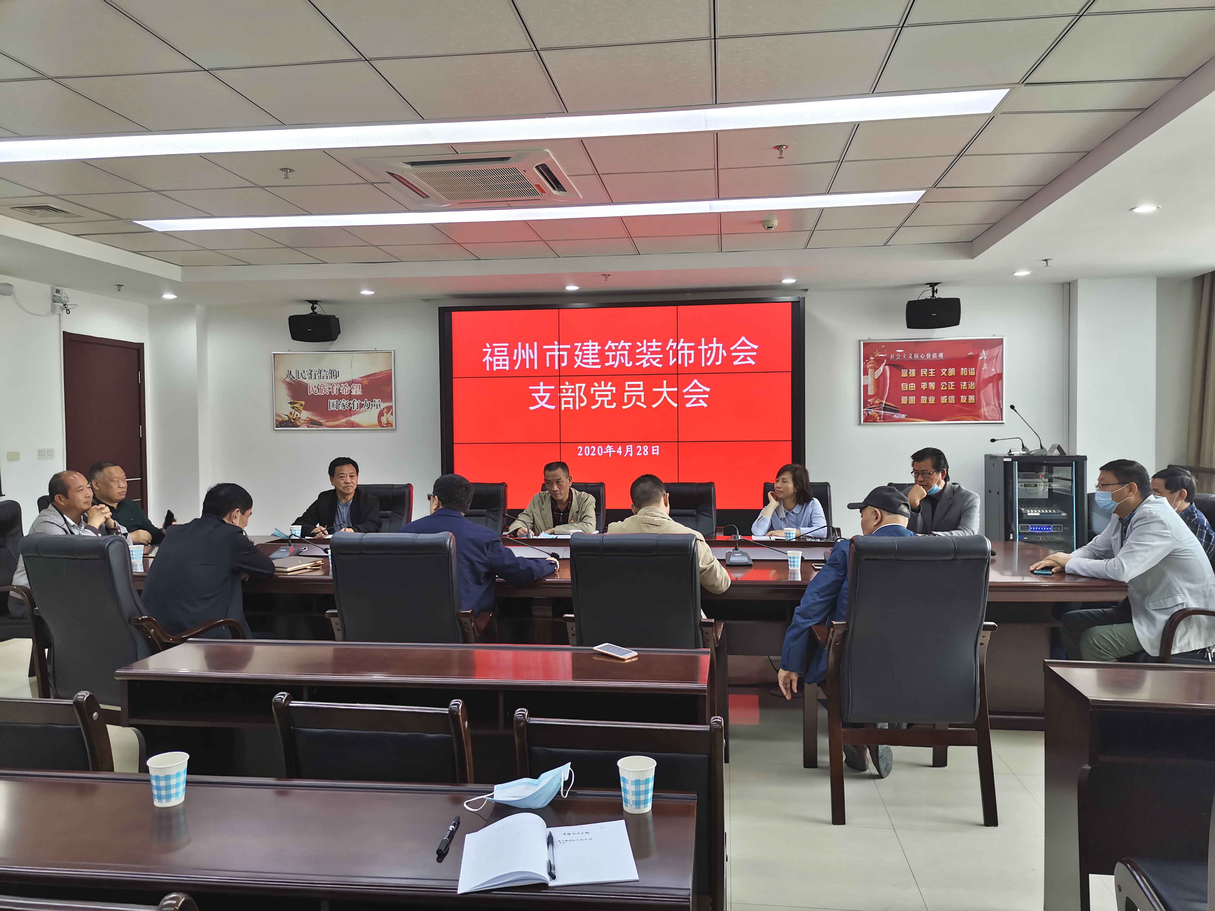 2020年4月28日上午,中共福州市建筑裝飾協(xié)會支部召開黨員大會。中共福州市建設局黨組成員、系統(tǒng)黨委書記陳瑞叔、裝飾協(xié)會支部書記陳金敏、裝飾協(xié)會會長何世根、監(jiān)事長俞若明、安全協(xié)會會長許如亮、秘書長陳恒、質量協(xié)會秘書長余賢英等,以及支部其他黨員參加了會議。