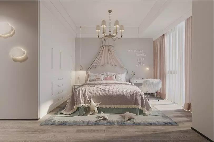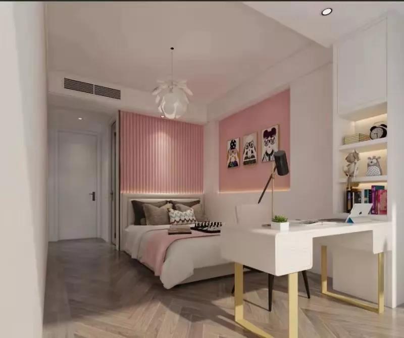 設計說明:設計以淺木色為主貫穿整體空間,從現代延伸至輕奢,淡雅的氛圍締造品質生活。客廳作為空間的主要生活區域,高級的灰色調給空間一種寧靜,舒適的感覺。抑或紫色,抑或暗紅增添了高貴的氣質。客廳與餐廳相通,又與喝茶區以一面電動隱藏式可旋轉書柜相隔,干練的黑色與奢華的金色,和木色的融合,有種沖突卻不違和之美。主臥灰色的墻面與原生態的木色搭配,黑色的吊頂與金色的映襯,加上燈帶的烘托,體現著個性又不失雅致的格調。小孩房以灰色與粉色為主,不論是紗幔還是壁飾,給人一種浪漫的幻想又不失童真的感覺。