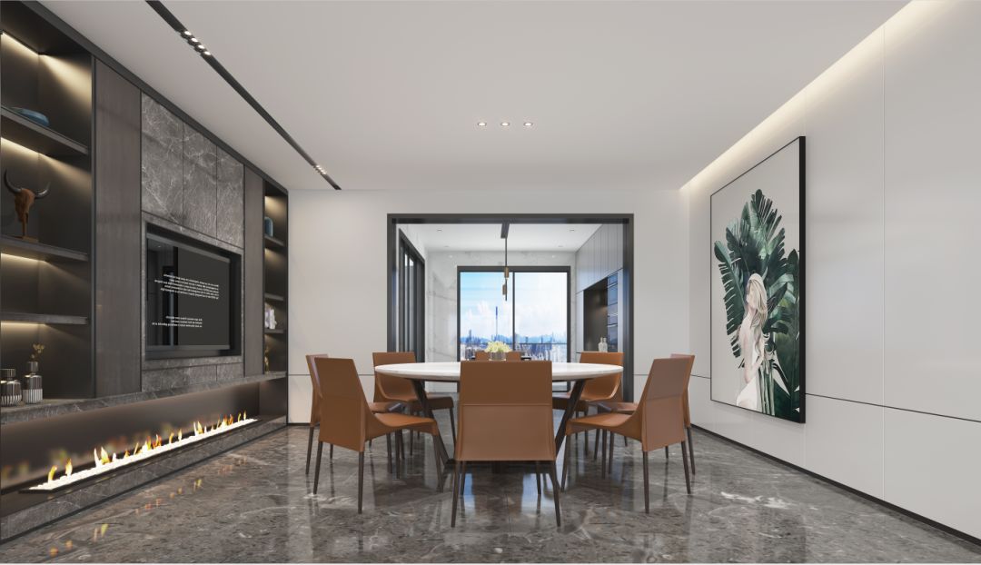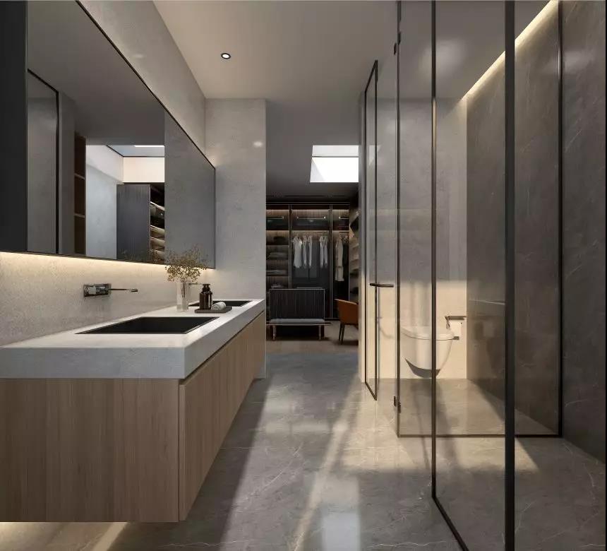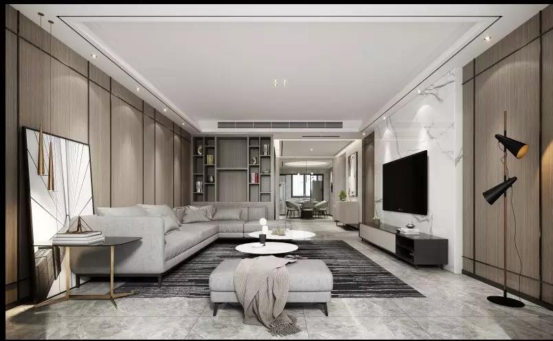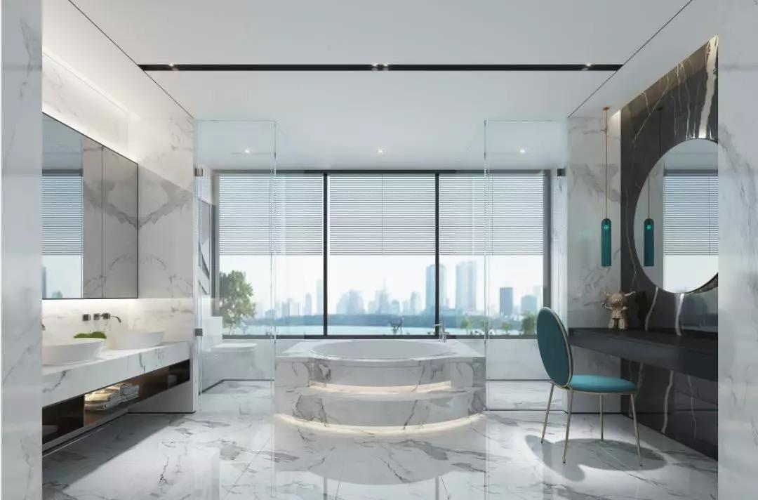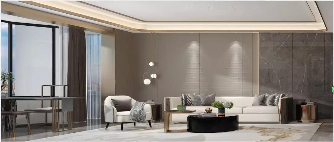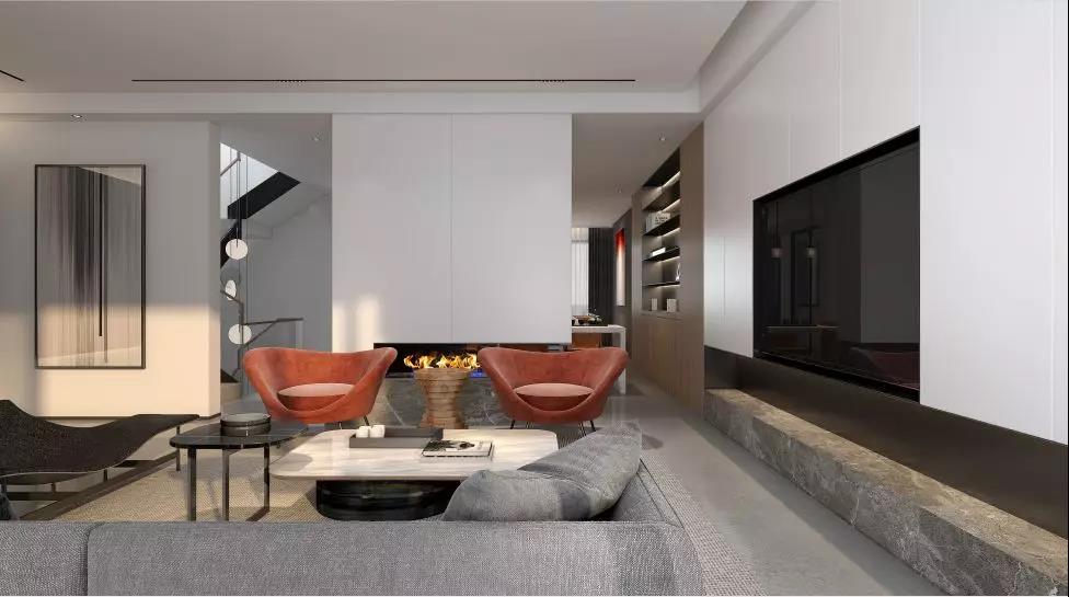 本案以現代風格出發,在充分展示空間的前提下對材質、空間、顏色的嚴格要求,最終呈現出一個時尚而舒適的精致空間。設計中運用暖木色與灰色大理石為鋪墊,適當的點綴金屬元素,平衡了大面積的大理石帶來的冷感,讓大理石的流動紋理更加精致而溫暖,不動聲色間增加空間的高級感,金屬,和不同的大理石的搭配,卻能詮釋不一樣的風情。集大氣與細膩質感于一身的豪華宅邸,演繹極盡奢華的大宅風貌。生活中,本該少一些浮躁,多一些執念與安靜。美好的設計,更追求自然內在!大面積的落地玻璃,讓空間顯得更加現代而敞亮,闊達、謙虛、美好,以開放、自然的胸懷擁抱世界。