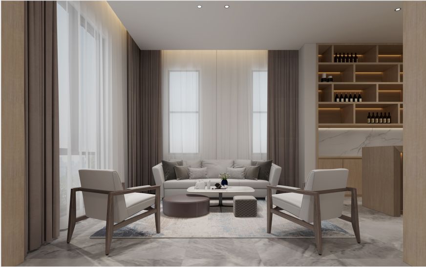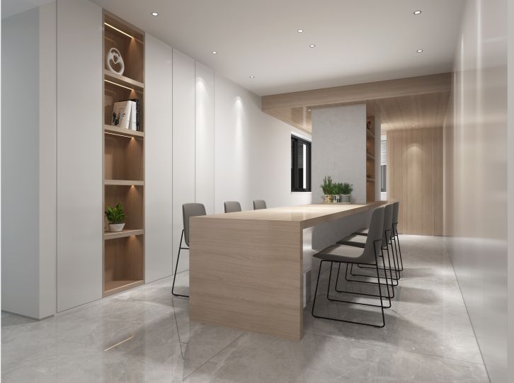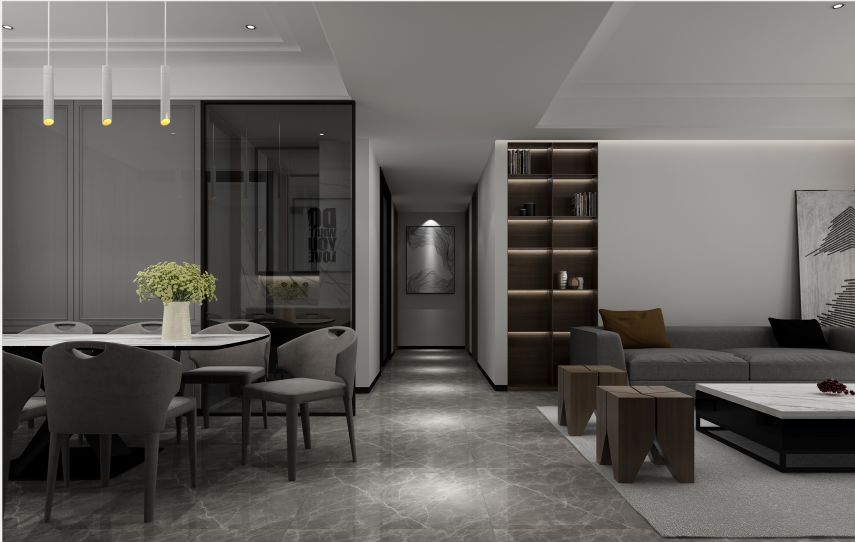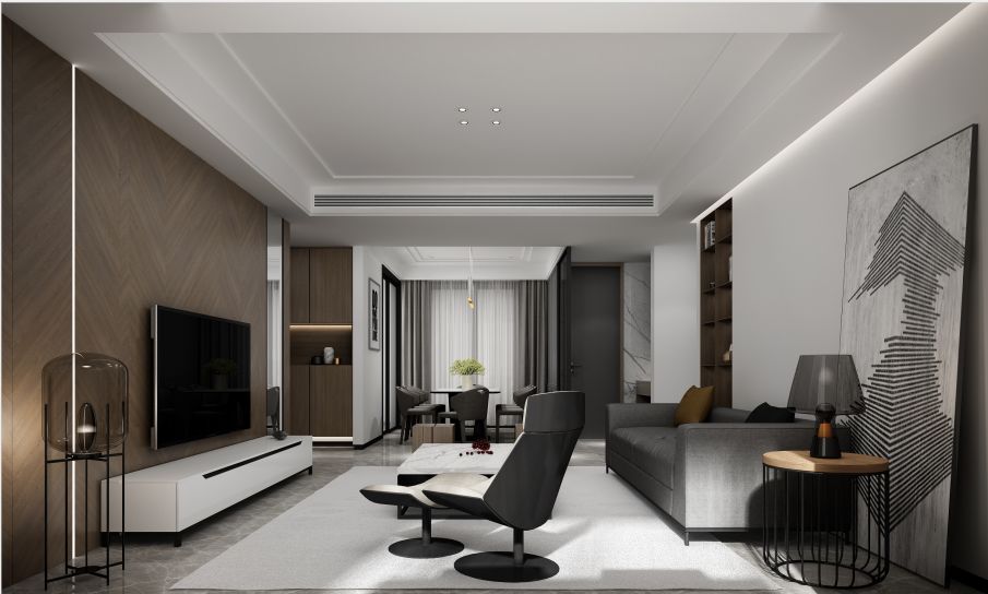 本案設(shè)計來源于對生活美好事物的一種表達(dá),內(nèi)外兼具知性的氛圍,賦予品味和獨創(chuàng)性,延展出無限的美感,灰色與木色的搭配,讓這里不僅時尚、實用,更彰顯著質(zhì)感與格調(diào)的魅力。自然柔和的大地色系家居,透過木板與石紋的細(xì)致勾勒,配以木板的木紋肌理,營造飄逸而恬謐的居家宅邸。突破風(fēng)格界限,帶著自我意識中對人文的理解和態(tài)度,重新審視陳設(shè)藝術(shù)與生活百態(tài),在均衡上給人以穩(wěn)定的心里感受,在整個空間協(xié)調(diào)中尋求沖突,在微妙的反差中獲得鮮明的互補(bǔ)平衡??臻g中的變調(diào)是色彩引發(fā)的視覺體驗,顏色合而不同,中性灰作為主色調(diào)不偏不倚,讓其他色彩在其襯映下呈現(xiàn)出最本質(zhì)的面貌,將藝術(shù)滲透進(jìn)生活,散發(fā)迷人的微醺美感,一切都那么自然而然。