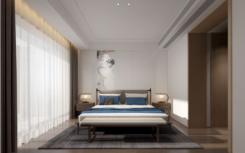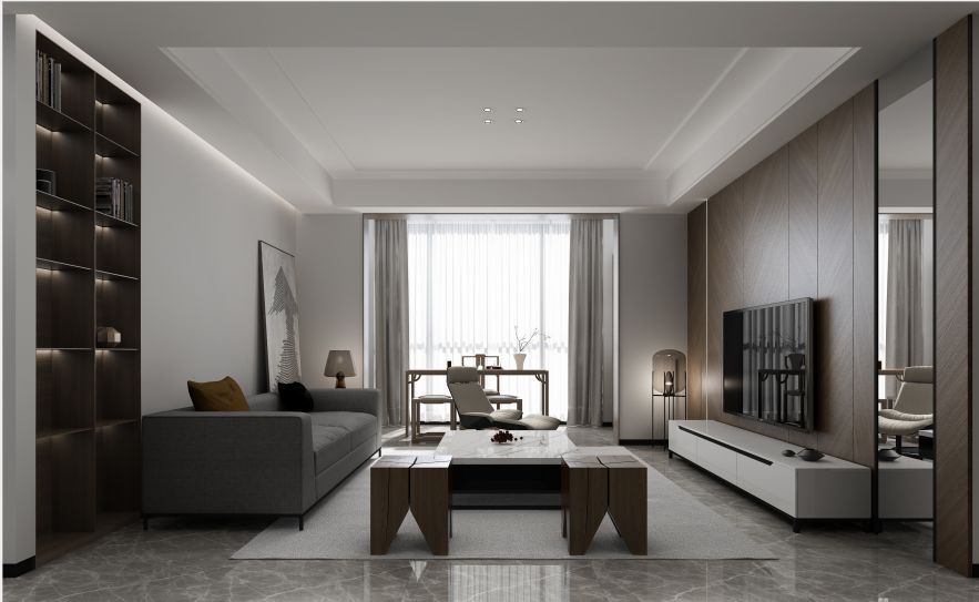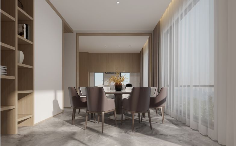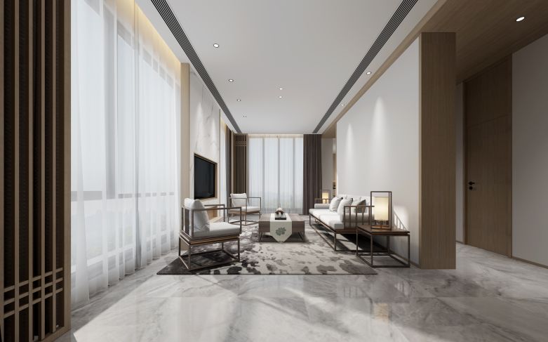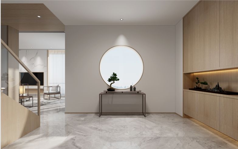 設(shè)計說明:“窗前一重景,清翠獨言奇。”入戶利用木質(zhì)邊框以透景的方式把意趣引入室內(nèi),空明澄澈,是靜止柔軟氣韻的第一展現(xiàn),整體面開敞直觀,天花與地面的顏色形成相應(yīng)對稱,水平方向的白墻與豎向原木色木飾面的烘托序讓空間棱角更為分明,在家具與裝飾品的選擇上,選擇傳統(tǒng)元素,極盡雅致。設(shè)計師平衡宏觀的格局與微觀的細(xì)節(jié),將新中式元素文化蘊(yùn)含著舒適簡約的理念傳遞而出,細(xì)微的感情與設(shè)計結(jié)合,規(guī)劃時分割的比例,塑造深層次的空間立體感,配合良好的采光,創(chuàng)造出簡潔而不失韻味新中式元素空間。
