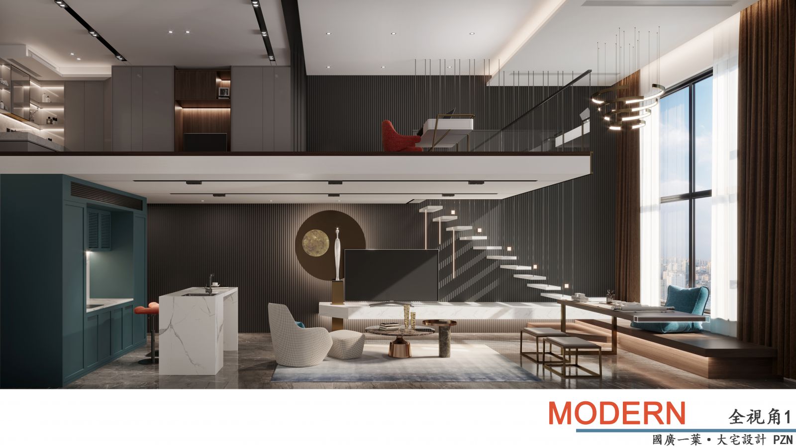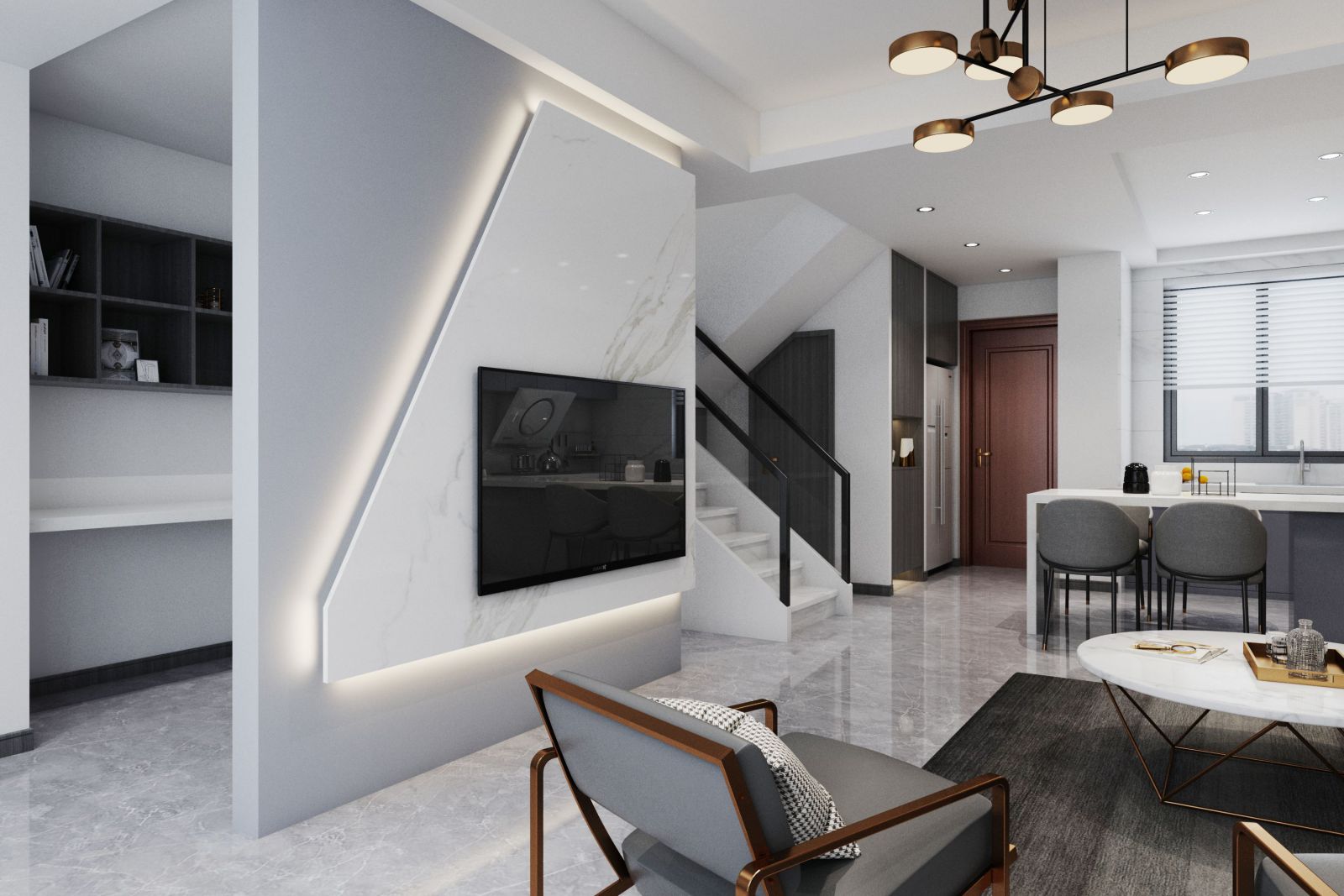 設計說明:本案為當下主流的SOHO戶型,設計重點在于解決層高和空間感。整體采用了現代風格,運用大塊面相同的材質增強整體拉伸感。搭配上跳色的極簡家具,讓空間多了一份靈動感。樓梯是整個設計的秒點。結合第二,三步臺階的高度,融合進了兩個方向上電視臺和榻榻米的設計,使之成為一體。搭配上燈光設計,讓其更加耀眼!