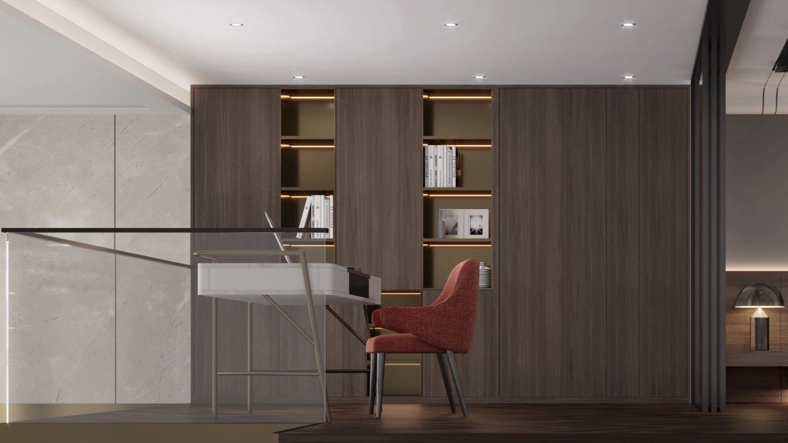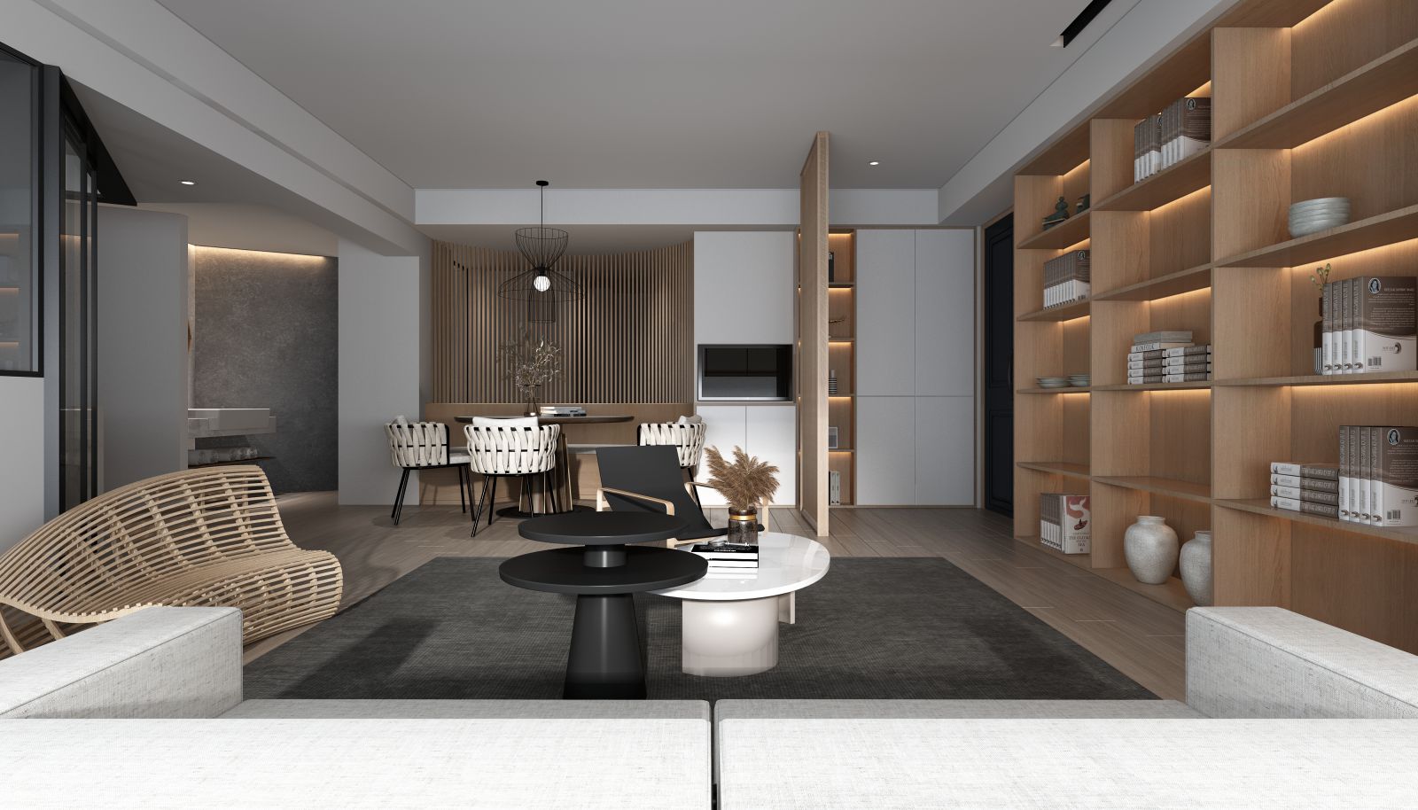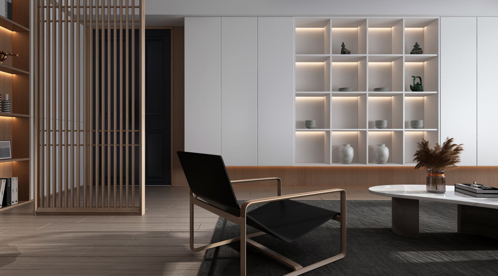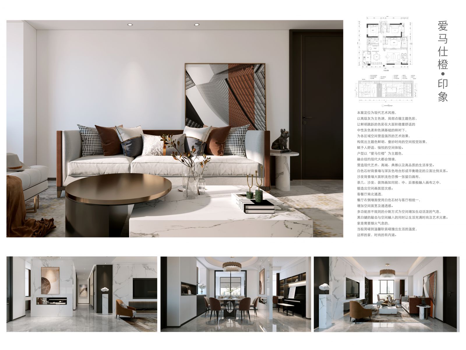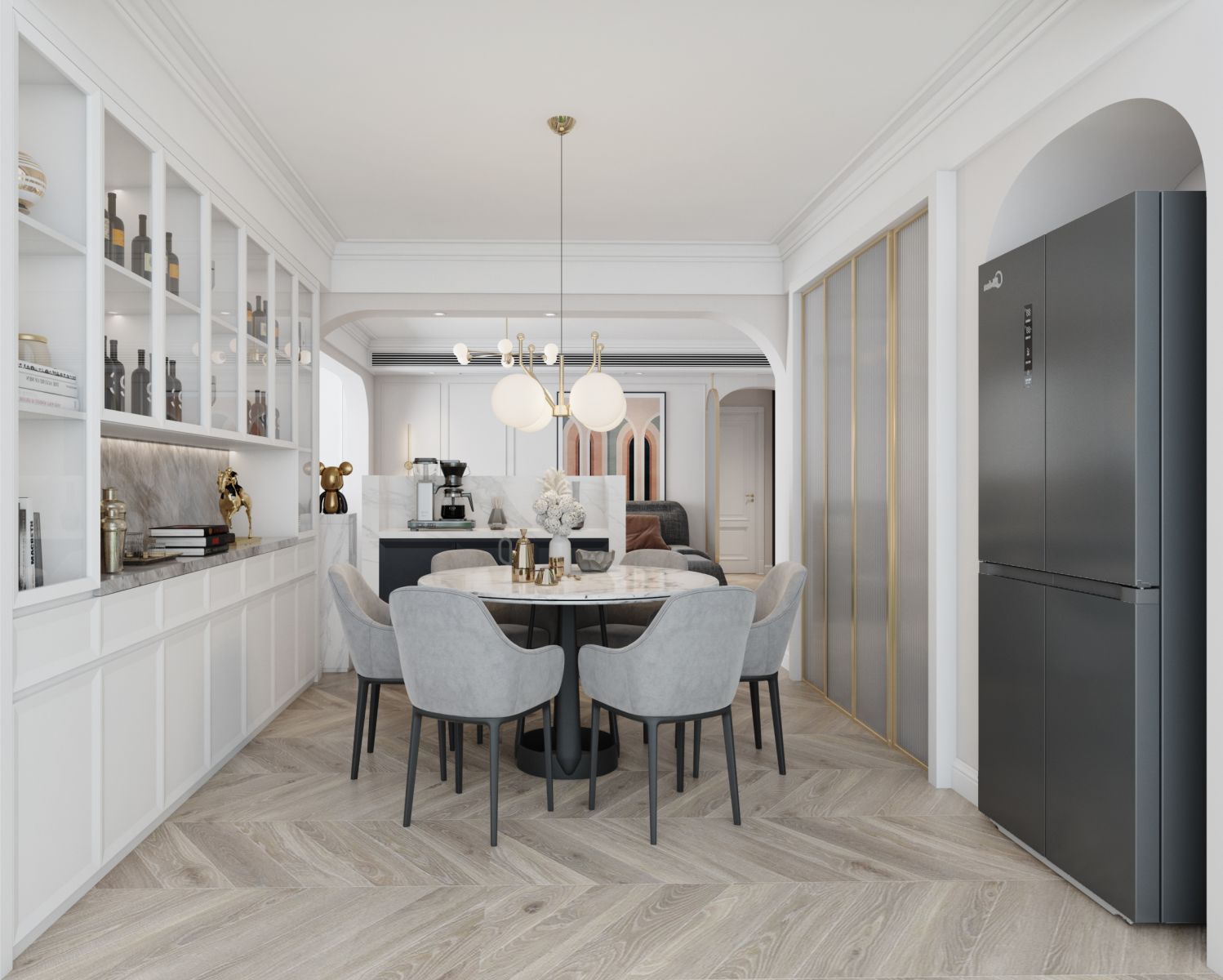 設計說明:繁華喧鬧的都市,繁復靡麗的事物。歲月“靜” 好,只有舍棄繁絮,追求更簡單的生活,方可擁有一處安放心靈的空間本案通過現代精神和輕奢特質間的演繹,跳脫風格與材質、色彩的束縛,在多與少、深與淺之間。輕柔踱步,營造出一個不造作、不浮夸、不喧囂的 “輕奢”空間從大門而入,步入開敞的入戶大廳,客廳和餐廳呈開放式設計,簡約線條勾勒出場域的大氣之感,富有質感的材料在簡單與低調中透出精致與奢華;空間以沉穩的灰色為主色調,金色點綴局部,格調高雅富有質感,色彩與質地相得益彰,才是整體空間美妙的衍生.以物映景,以景映人,人與空間,物與空間,物與物的對話無不蘊含著大繁至簡的共性。內與外是共生,深與淺是對比,即矛盾又和諧,在矛盾與和諧中感受文化意韻之大美.