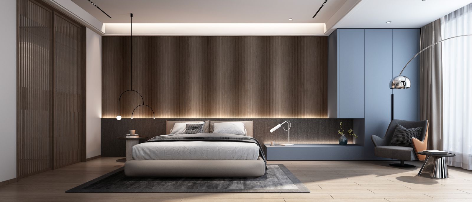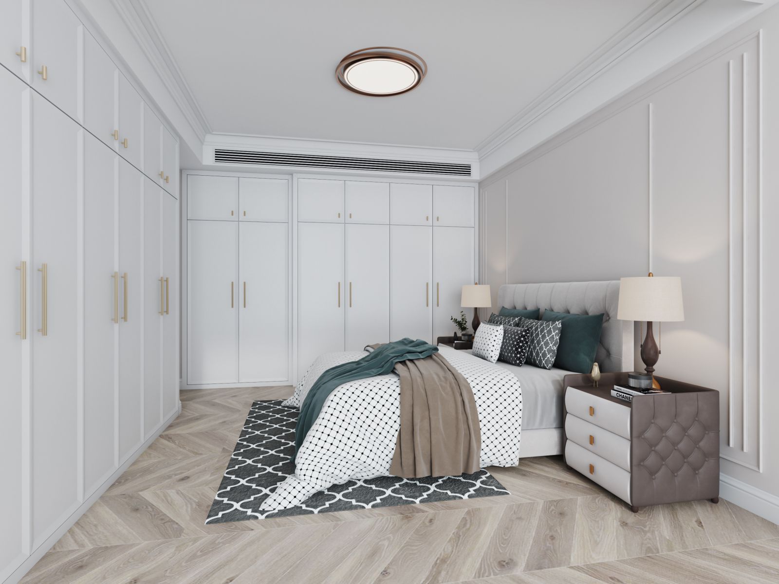 設計說明:本項目位于福州融僑外灘,地處江濱閩江邊上,地理優勢,室內住宅面積為250㎡大平層,滿足業主布局要求設計四室二廳三衛一廚。業主喜歡現代輕奢風格,空間采用了開放式布局,客餐廳縱向延展,兩兩互通,整體空間更加闊朗大氣,同時讓家人間交流更便捷,營造和諧的居家氛圍。客廳用淺色仿大理石瓷磚鋪墊輕奢優雅的格調,搭配皮質沙發為素雅的空間增添幾分貴族氣息。主臥整體色調以暗色、米白色為主,優雅的藍色平衡兩者又強調著自身的個性,它們共同營造輕松安逸的環境。女孩房運用了粉色系,呈現了一個夢幻、活潑、時尚的空間。