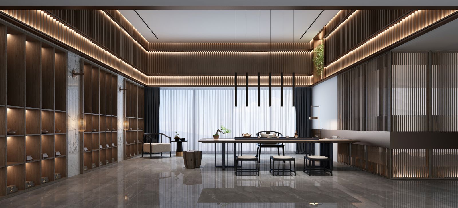 自古以來,國人好茶。在茶室區域,設計師用木線條的虛實做隔斷,既保護了茶區的氛圍,又使得整個空間靈動通透。茶盞交錯,淺酌慢飲,正可謂茶余飯飽邀故友,偷得浮生半日閑。本案以干凈利落的空間結構,來配合古老靛藍色調的安靜沉穩。靛藍色的立面與軟裝的點綴,為空間增添了活了與亮點,不至于太平悶,也不至于太熱烈,是一種干干凈凈的輕松和舒適。設計師用現代的設計手法來凝結東方美學的精髓,讓現代的時尚感來呼應細微處的中式味道,整體空間的度量把握得恰到好處,給人呈現出一種微妙的意境美感,正如沉淀了三千多年的靛藍一樣美麗。