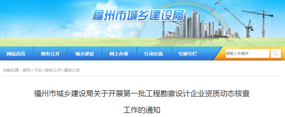 根據(jù)《福建省住房和城鄉(xiāng)建設廳關于開展建設工程企業(yè)資質(zhì)動態(tài)核查專項行動的通知》(閩建許〔2022〕1號)要求,我局將對福建省住房城鄉(xiāng)建設政務服務系統(tǒng)上由福州市城鄉(xiāng)建設局審批發(fā)證的工程勘察、設計企業(yè)資質(zhì)情況進行動態(tài)核查,現(xiàn)公布第一批資質(zhì)動態(tài)核查企業(yè)名單(附件1),請相關工程勘察設計企業(yè)派專人攜帶相關核查材料(附件2)于2022年7月15日前前往福州市東部辦公區(qū)7號樓1157室配合核查工作。