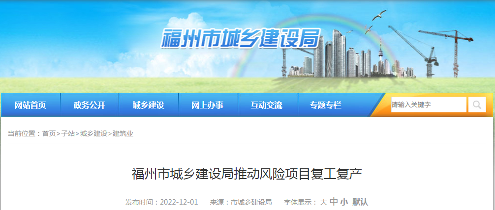 【轉發】福州市城鄉建設局推動風險項目復工復產