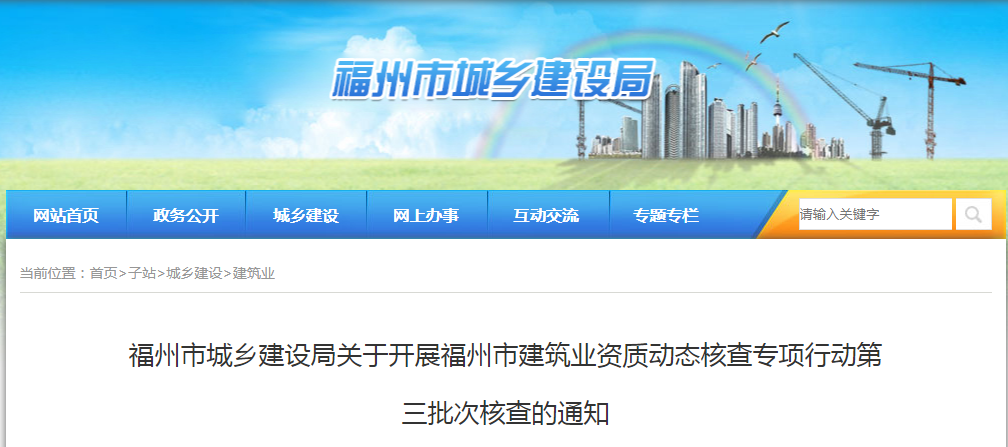 為強化建筑業資質事中事后監管,有效遏制“皮包公司”問題,清理“僵尸企業”,凈化建筑市場環境,優化市場資源配置,根據《福建省住房和城鄉建設廳關于開展建設工程企業資質動態核查專項行動的通知》(閩建許〔2022〕1號)、《福州市建筑業企業資質動態核查專項行動方案》等相關文件要求,我局于2022年6月開展福州市建筑業資質動態核查專項行動,并告知我市建筑業企業應在7月前完成自查自糾。根據核查方案要求,現我局開展專項行動第三批次的建筑業資質動態核查,具體通知如下: