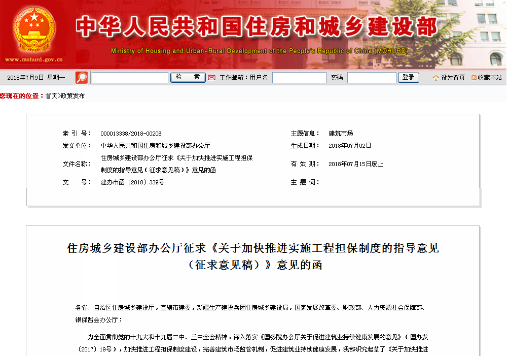 2018年7月6日,住建部官網發布《關于加快推進實施工程擔保制度的指導意見(征求意見稿)》,明確規范發包方、承包商、建設單位、施工單位等行為。對于大家關注的最低價中標,建設單位拖欠工程款及到期未退還保證金等情況也都提出切實可行的解決辦法,可以說大大保障了施工企業的利益。